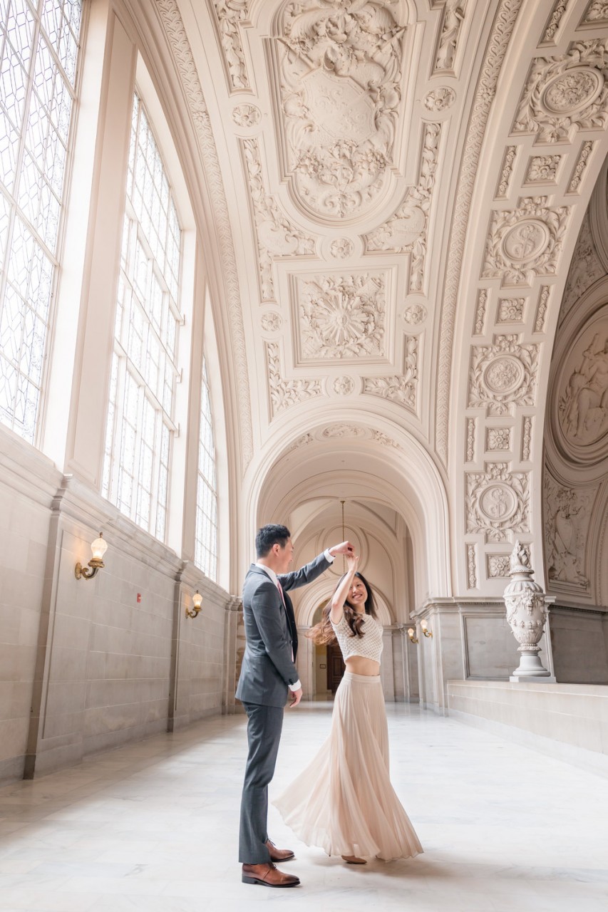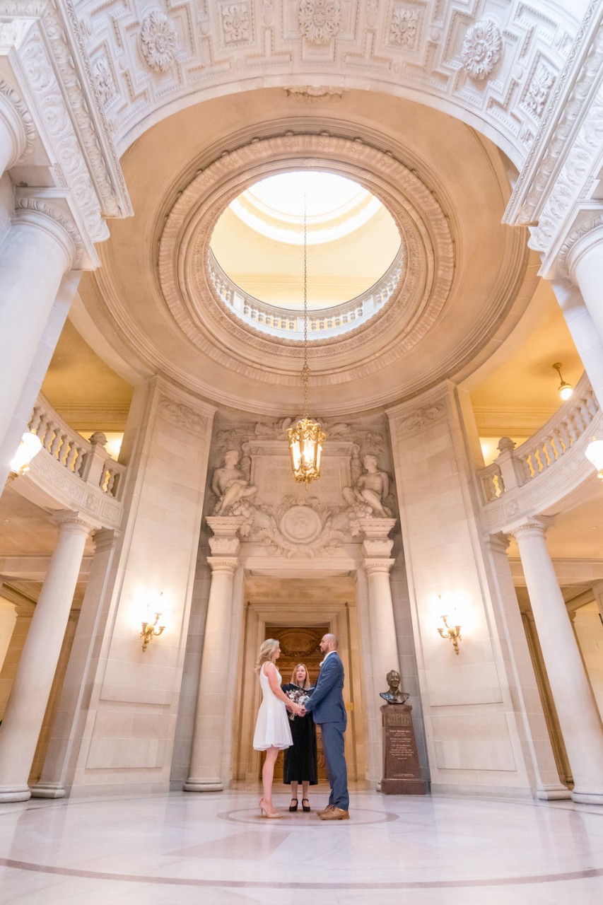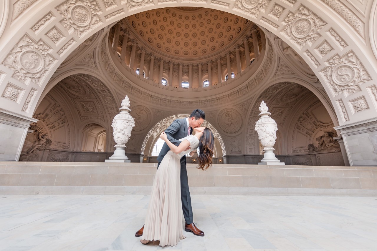 San Francisco City Hall’s grand architecture and beautiful interior are unlike that of any other city hall out there, making it a one-of-a-kind venue for wedding ceremonies. It’s an extremely popular indoor location for photos among my clients (even just as a location for engagement photos), and I’m happy to help you with its ins and outs. Some couples even travel here from out of town for their elopement, so I often have the honor of being not just a photographer, but a local guide and a witness as well!